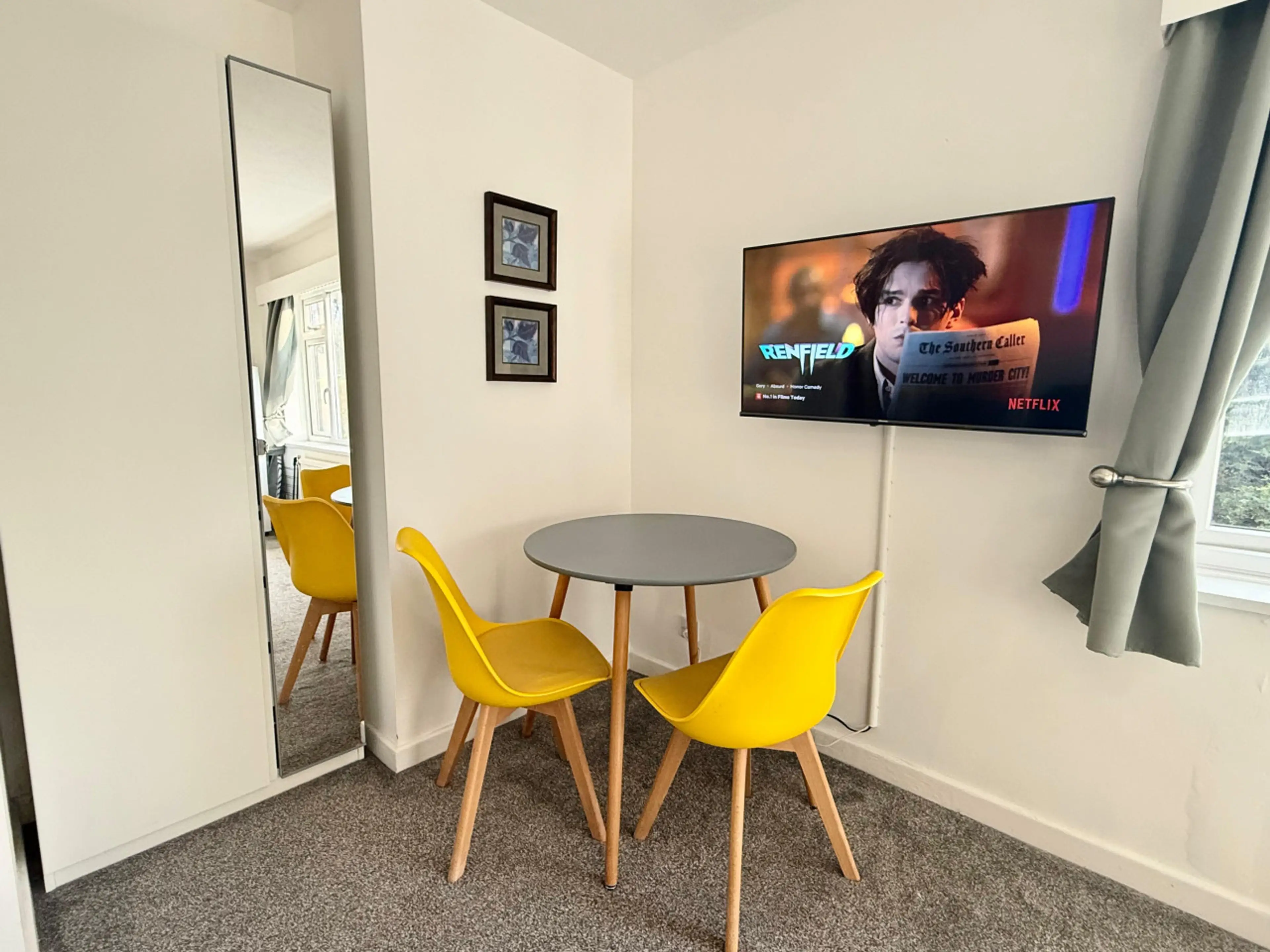 Positive: The property manager was attentive and quick to respond to queries. The location was peaceful and quiet, while also being conveniently positioned close to a bus route to town. It had a pleasant view overlooking a field and wooded area. The flat had all the facilities I needed for a one-week stay.